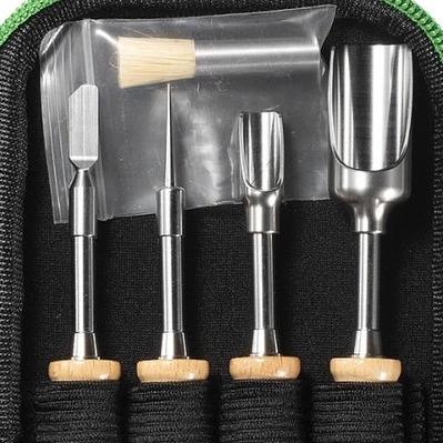 Whether you’re loading concentrates, stirring during a session, or cleaning up afterward, each tool has a specific purpose that makes handling extracts cleaner and more controlled. Everything stores neatly inside the included zippered case, making it ideal for both home use and travel.